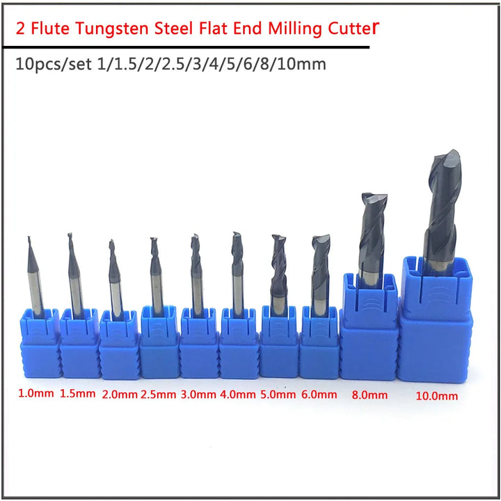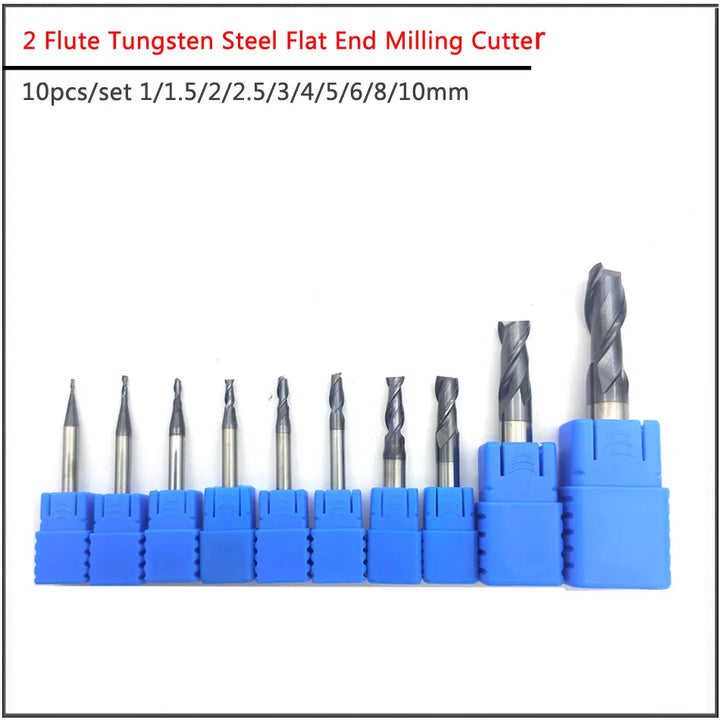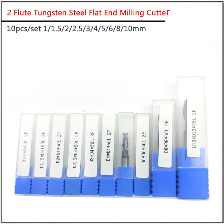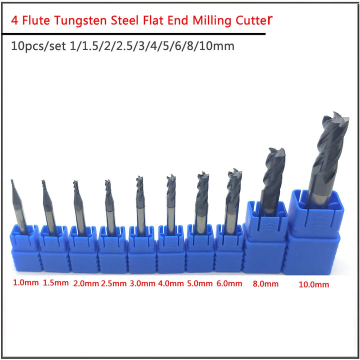 2 Flute 1-4mm 6Pcs, 2 Flute 1-10mm 10Pcs, 4 Flute 1-4mm 6Pcs, 4 Flute 1-10mm 10Pcs