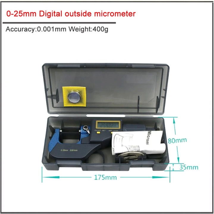0-25mm Outside micrometr diameter of digital display ,High precision outer diameter measuring instrument accuracy 0.001mm