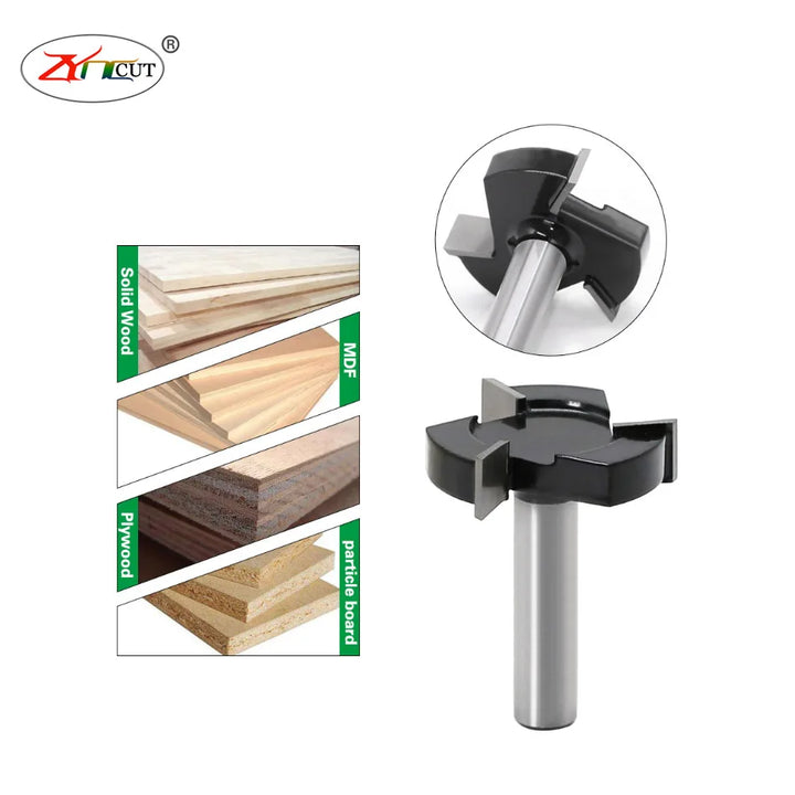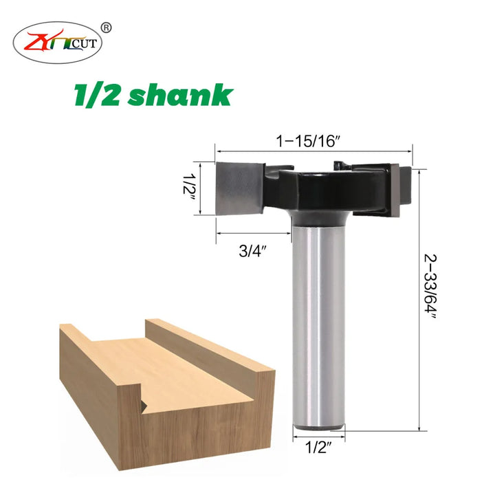 1/2 1/4in shank Three edge T-knife slotting cutter woodworking broaching milling cutter t-tenon cutter woodworking Gong cutter