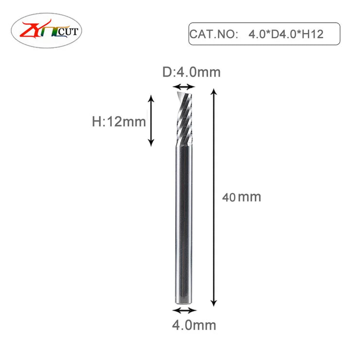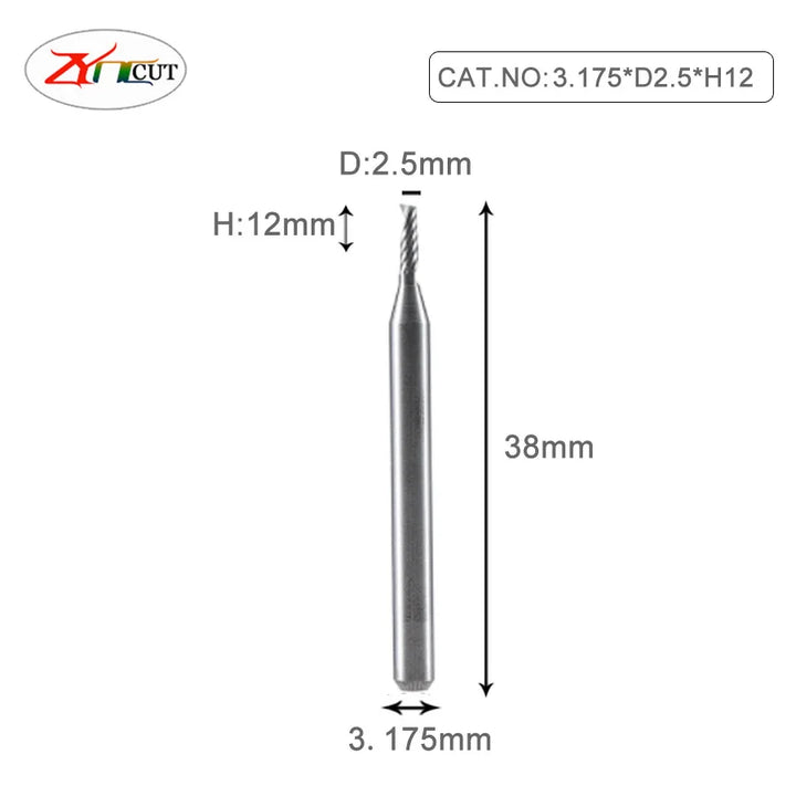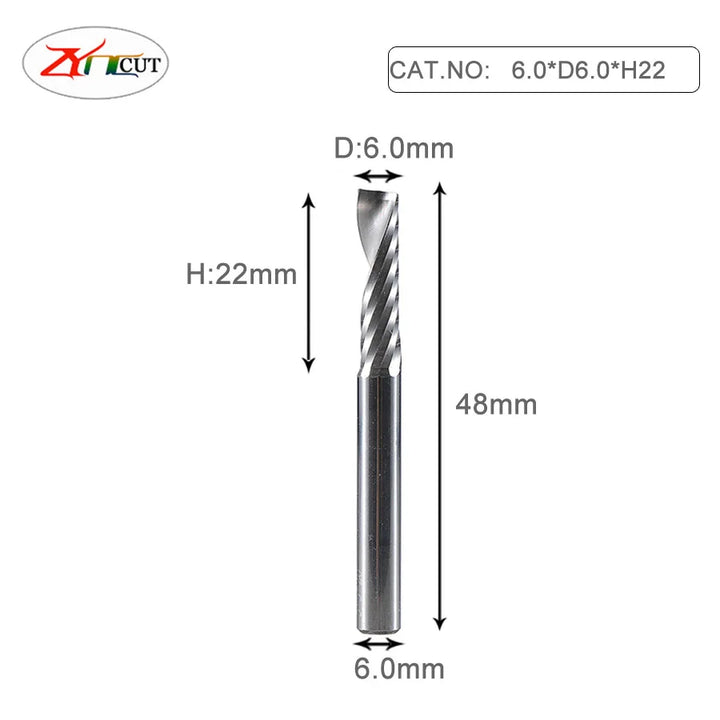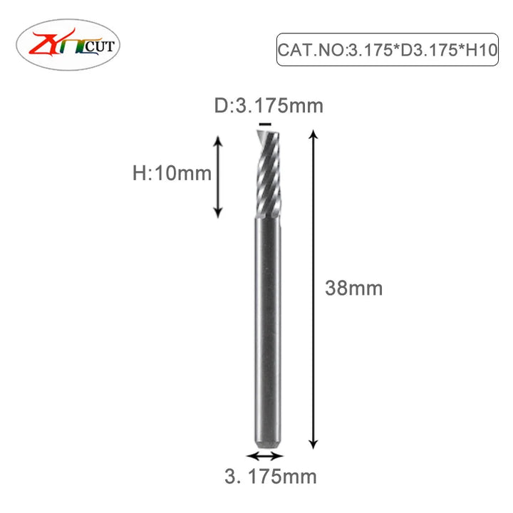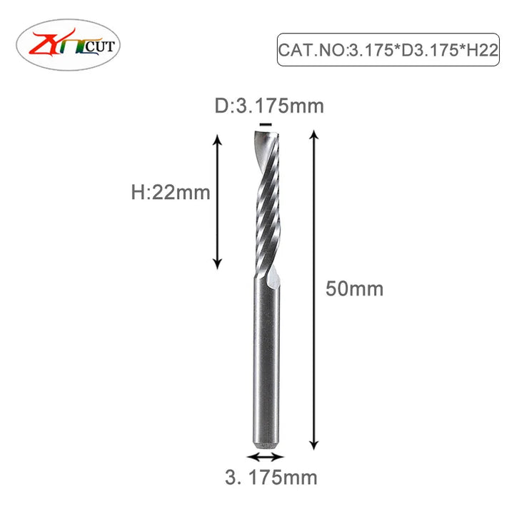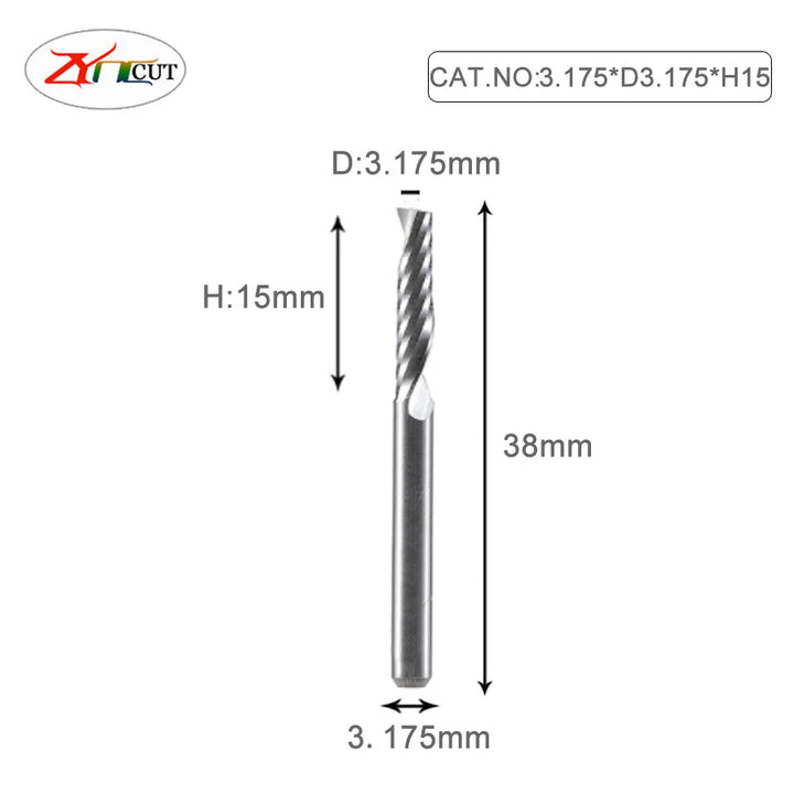 1 2 3.175/4/5/6mm Single edge spiral milling cutter acrylic PVC density board solid wood aluminum alloy carving milling cutter