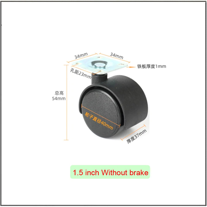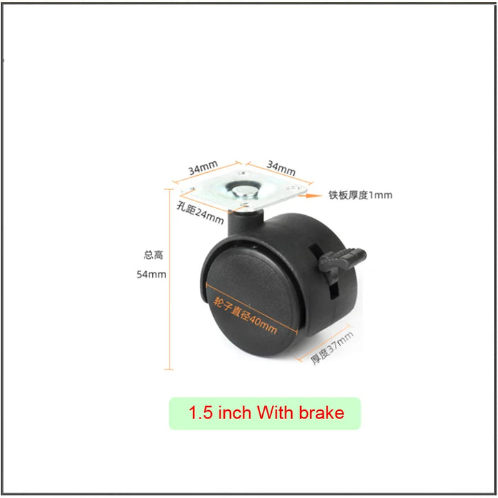 1.5 inch Flat universal wheel host bracket wheel furniture desk boss chair pulley with brake roller