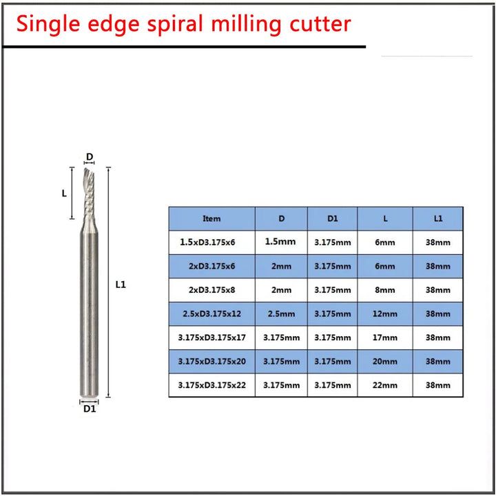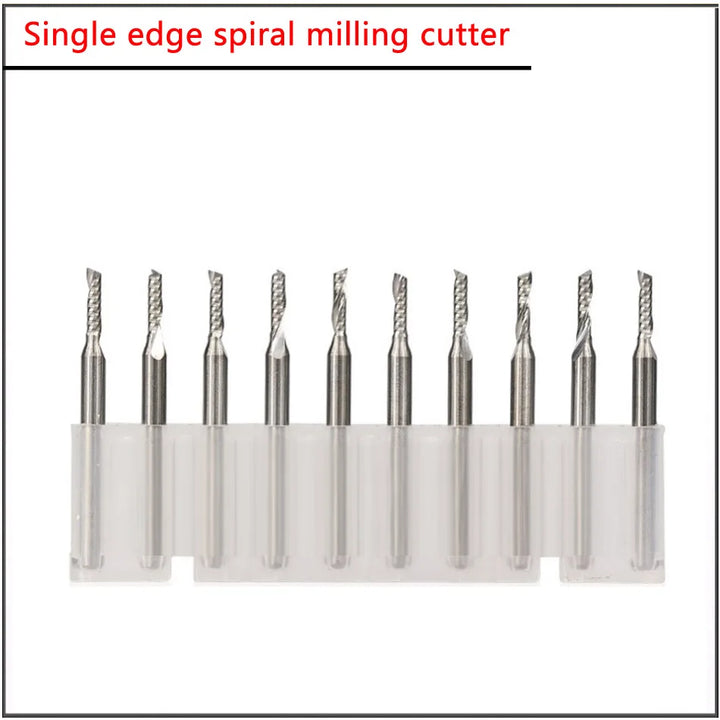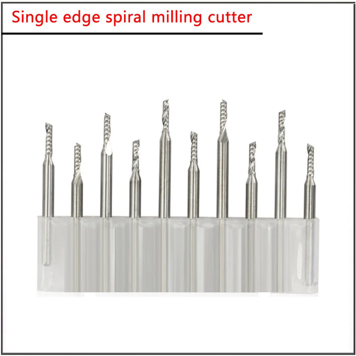 10Pcs set 1.5 2.0 3.175mm PCB Single Edge Spiral Carving Tungsten Steel Milling Cutter Edge Nano Coating END Mill Cutter