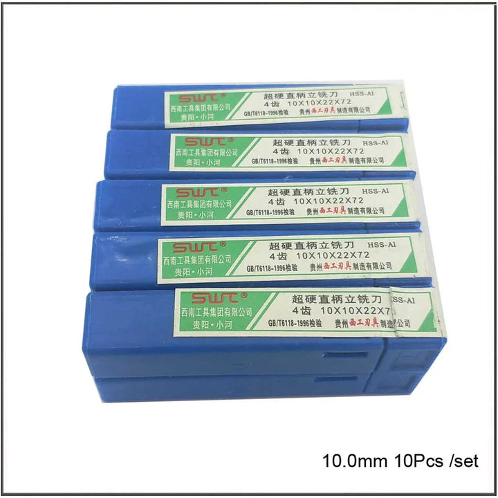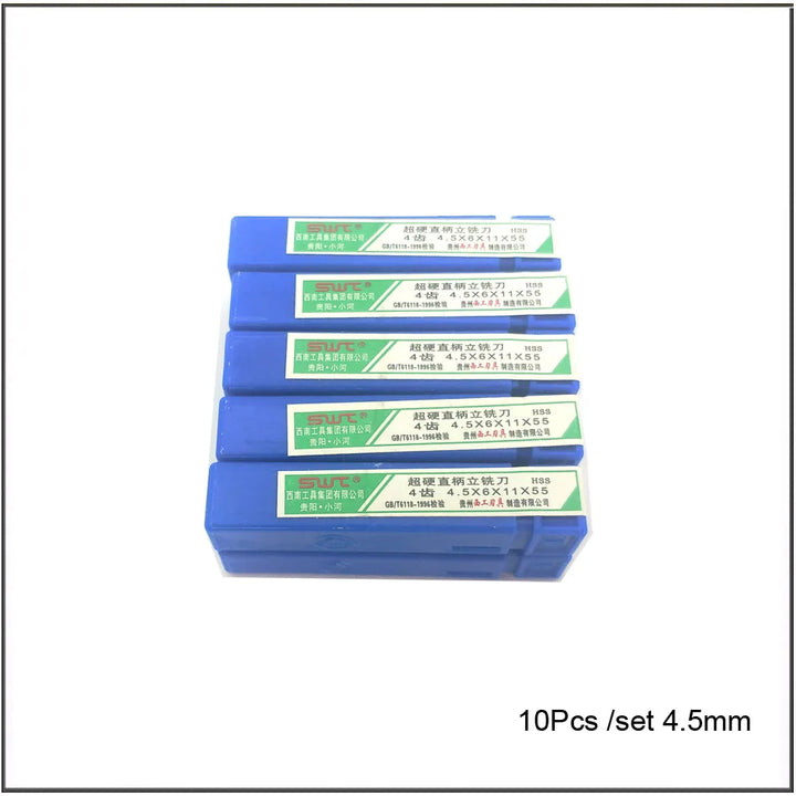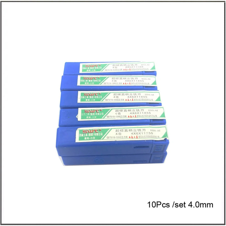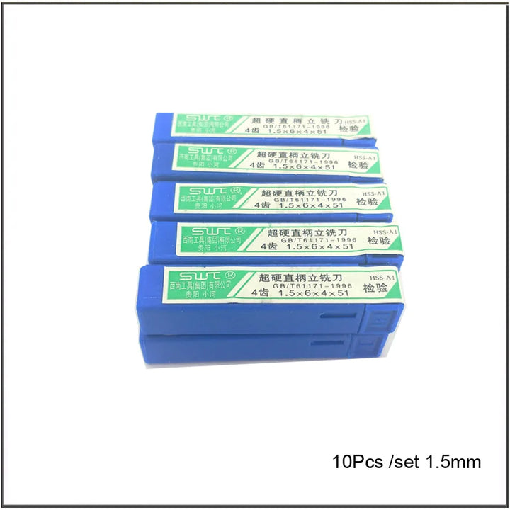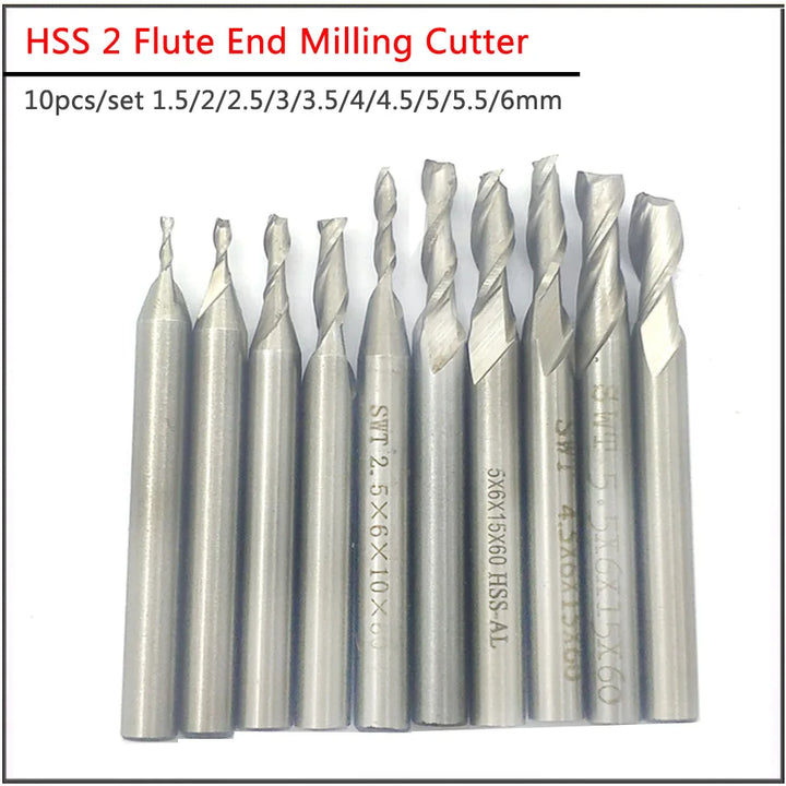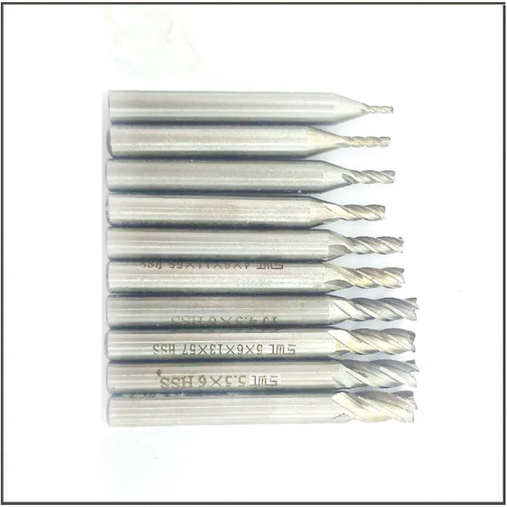 10pcs/set 1.5/2/2.5/3/3.5/4/4.5/5/5.5/6/7/8/9/10mm High Speed Steel 4 Flute End Mill Cutter HSS straight shank milling cutter