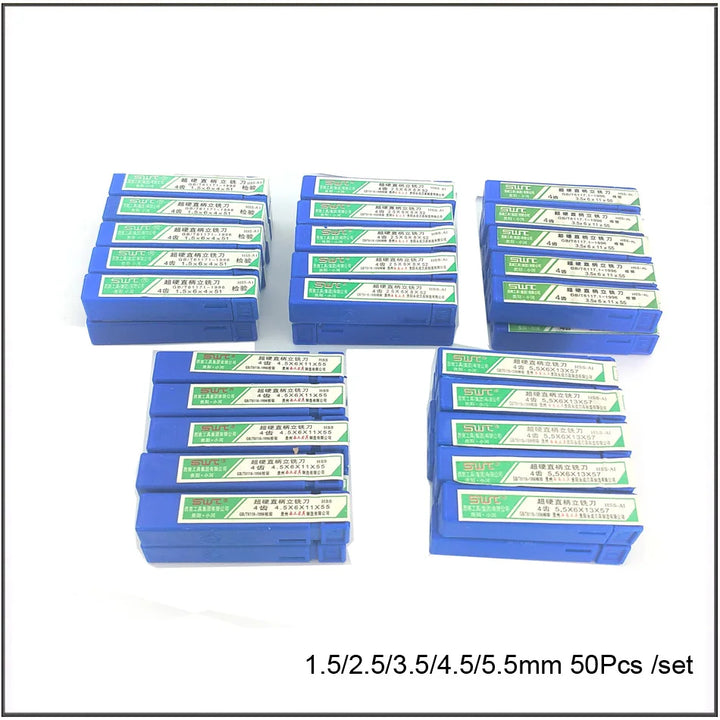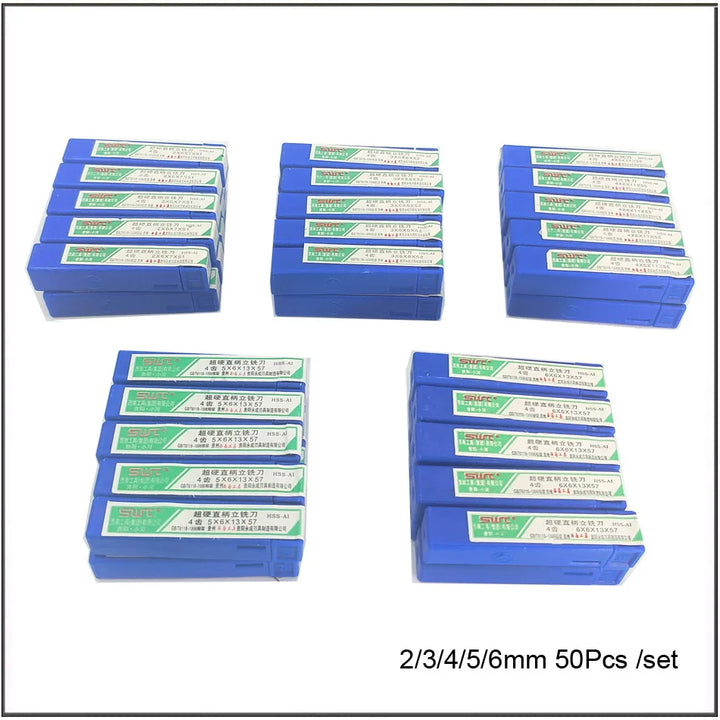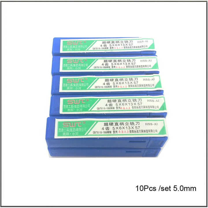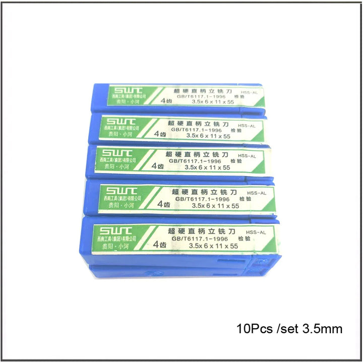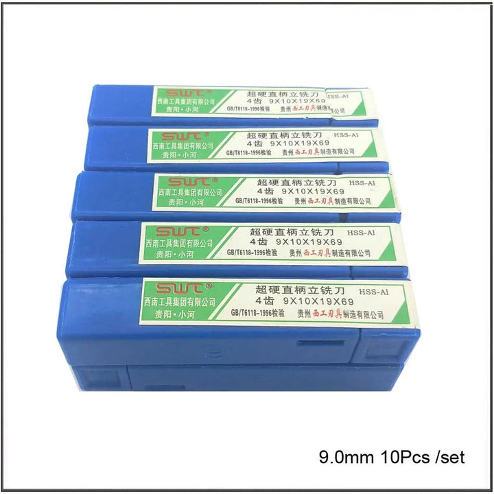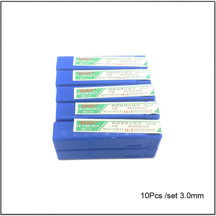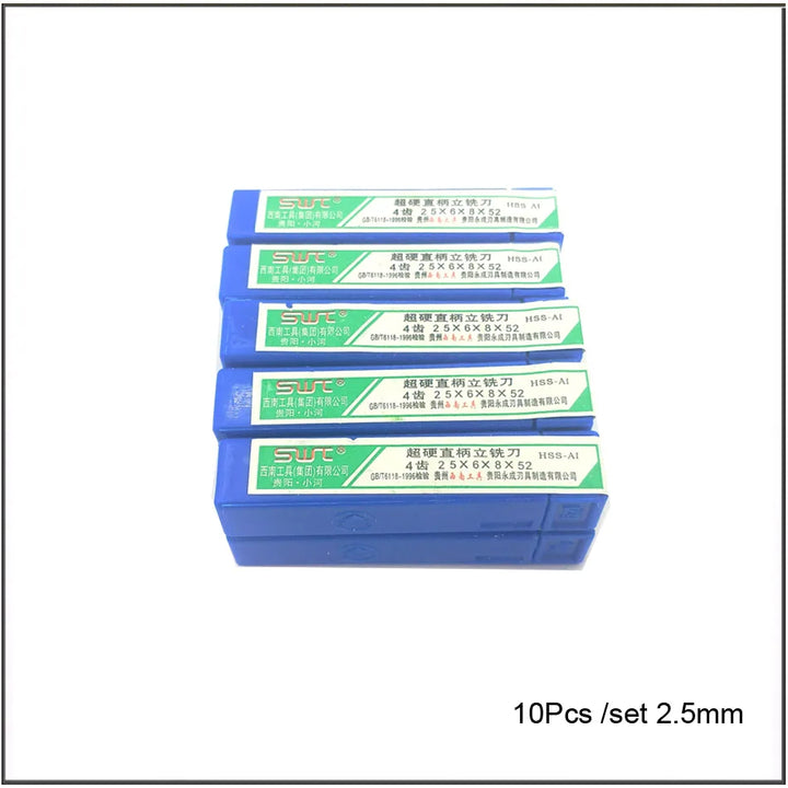 10pcs/set 1.5/2/2.5/3/3.5/4/4.5/5/5.5/6/7/8/9/10mm High Speed Steel 4 Flute End Mill Cutter HSS straight shank milling cutter