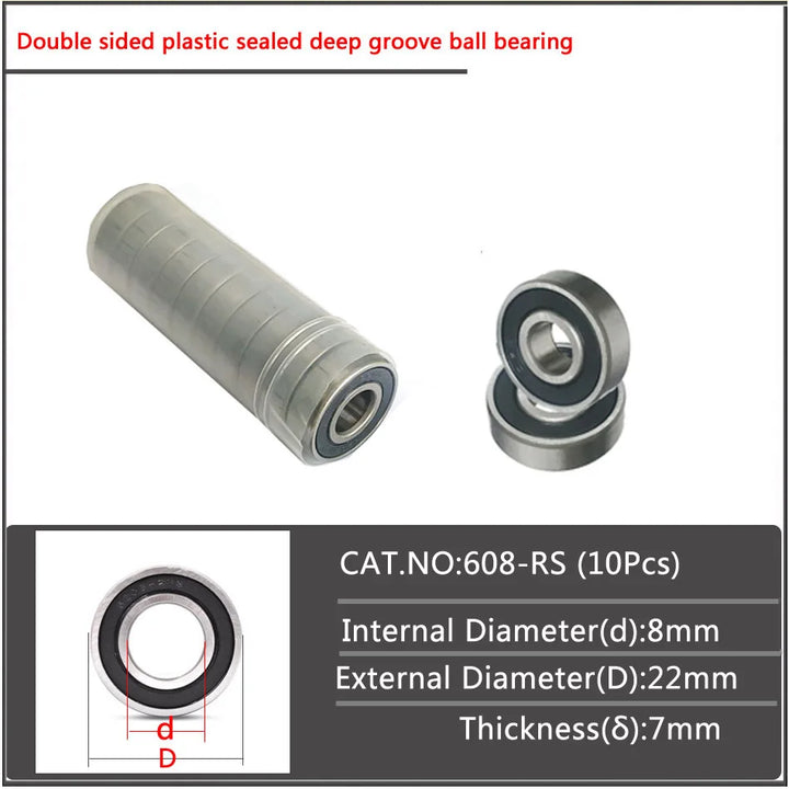 10PCS/SET 606 607 608 609RS Double sided film sealed ball bearing, High Speed Micro Stainless Steel Special bearing for scooter