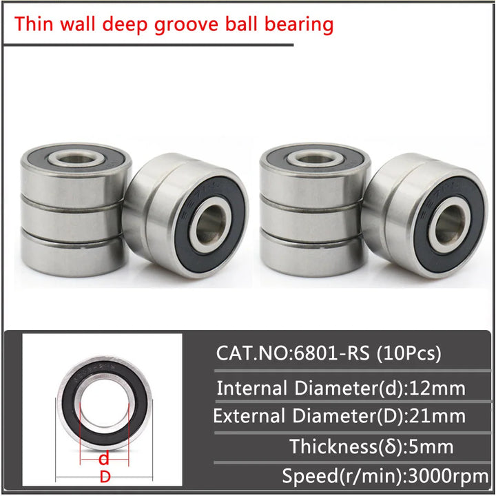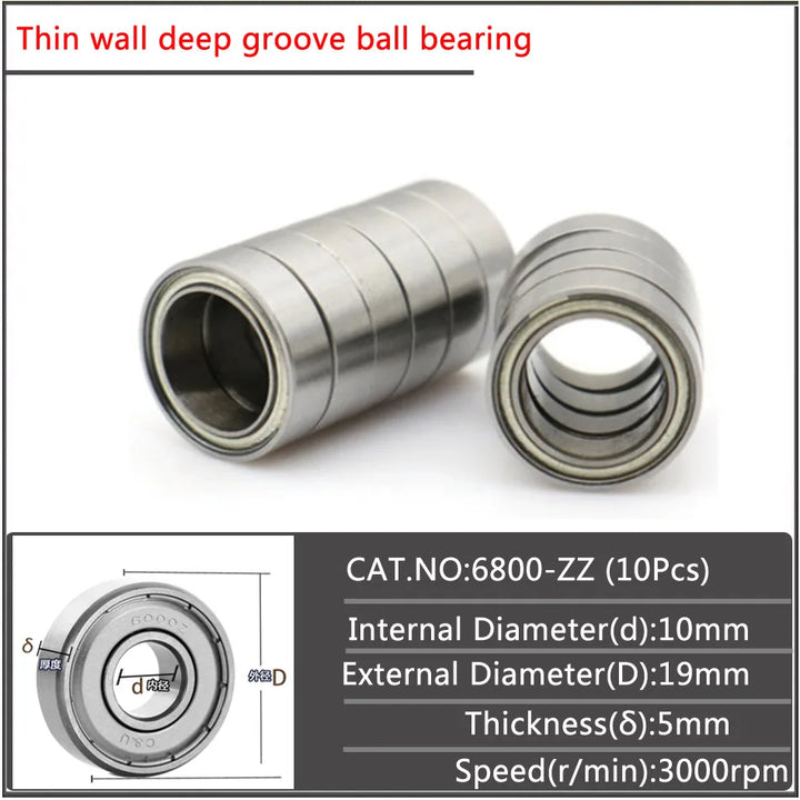 10Pcs/set 6800 6801 6802 6803 6804 6805 6806 Double sided iron sheet seal Small diameter Thin wall deep groove ball bearing