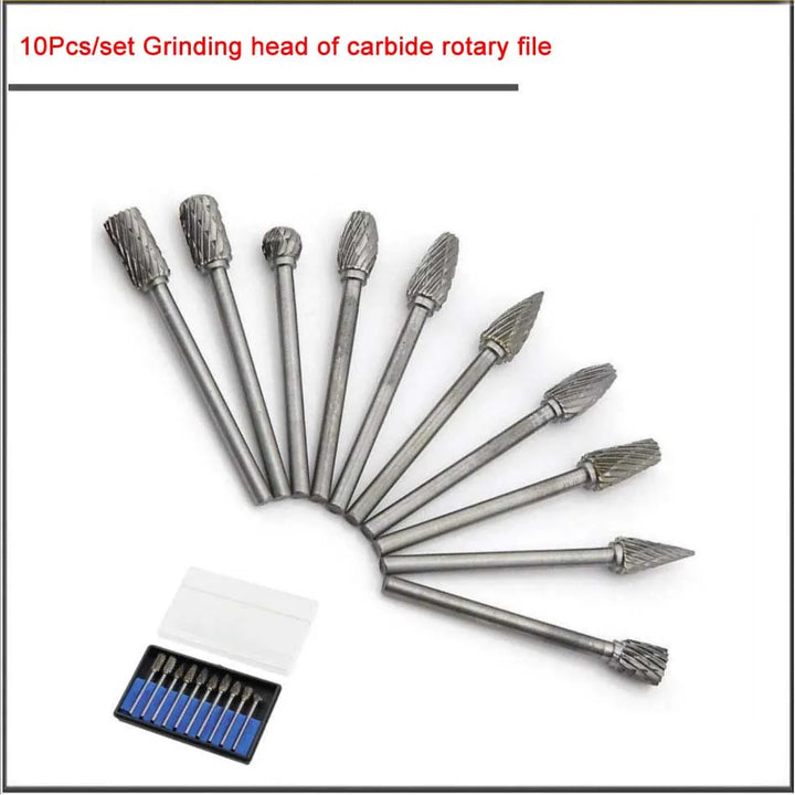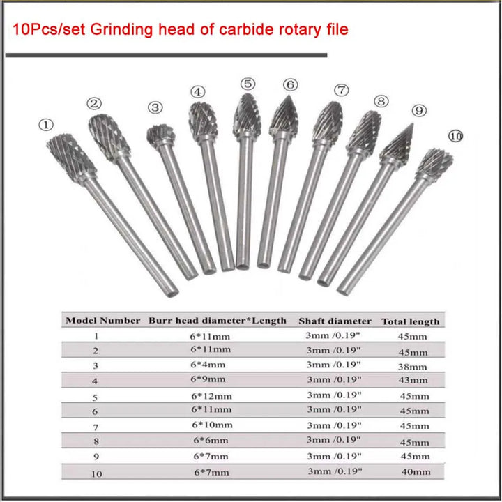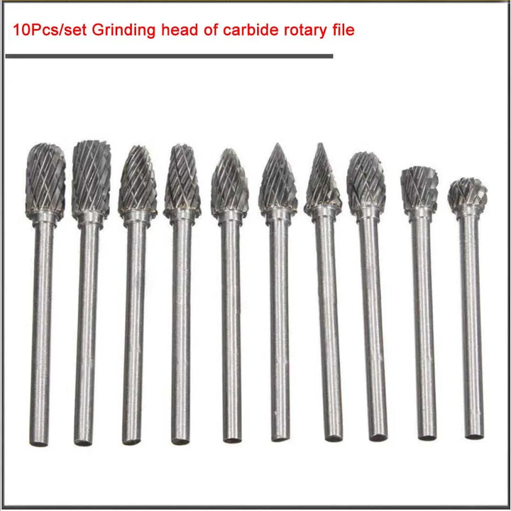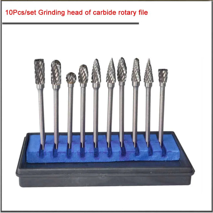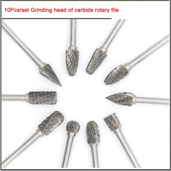 10pcs set handle 3mm Edge 6mm Carbide rotary file tungsten steel grinding head alloy metal wood mold carving milling cutter