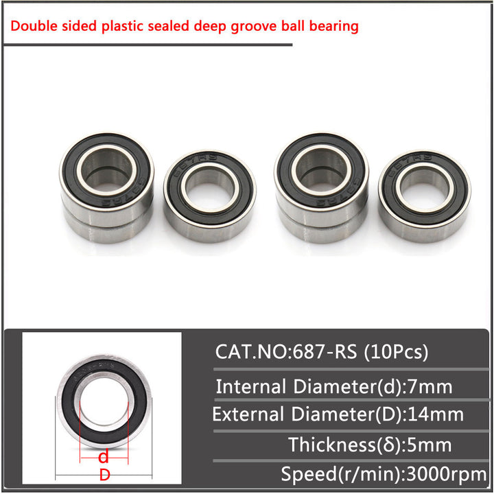 10Pcs MR117ZZ, 10Pcs MR137ZZ, 10Pcs 687ZZ, 10Pcs 697ZZ, 10Pcs 607ZZ, 10Pcs 627ZZ, 10Pcs 627RS, 10Pcs 687RS, 10Pcs 697RS, 10Pcs 607RS |