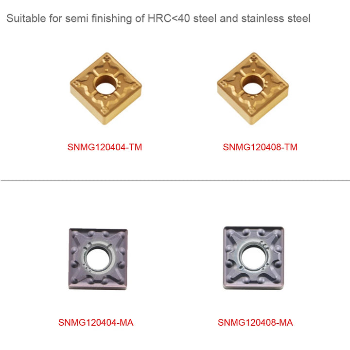 SNMG120408-TM P201F, SNMG120404-TM P201F, SNMG120408-MA P301F, SNMG120404-MA P301F |