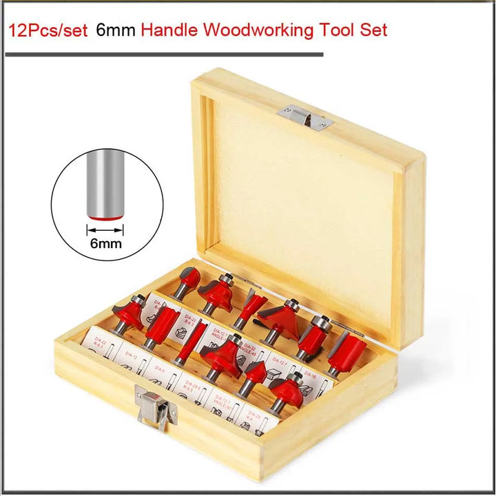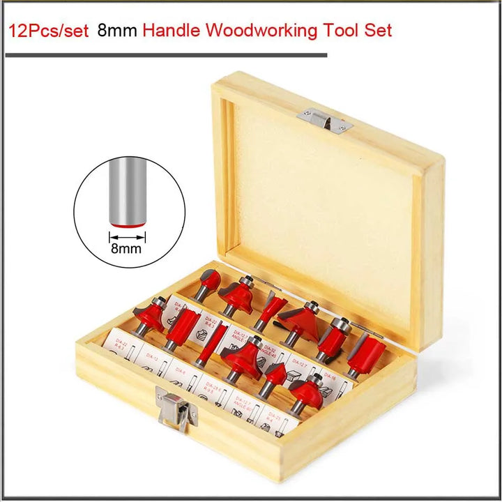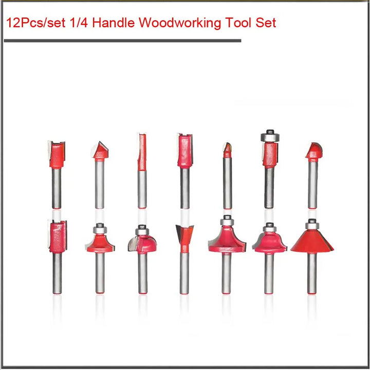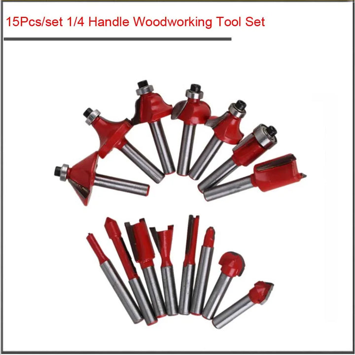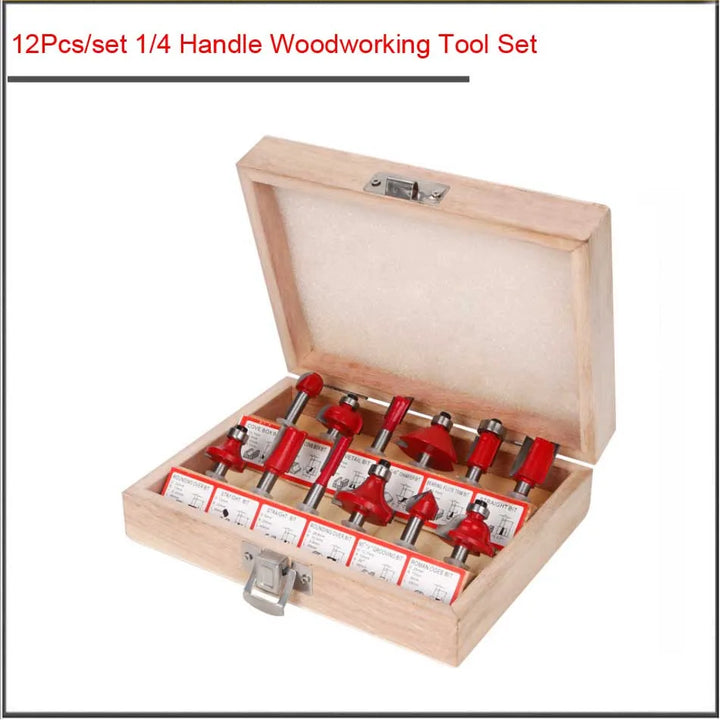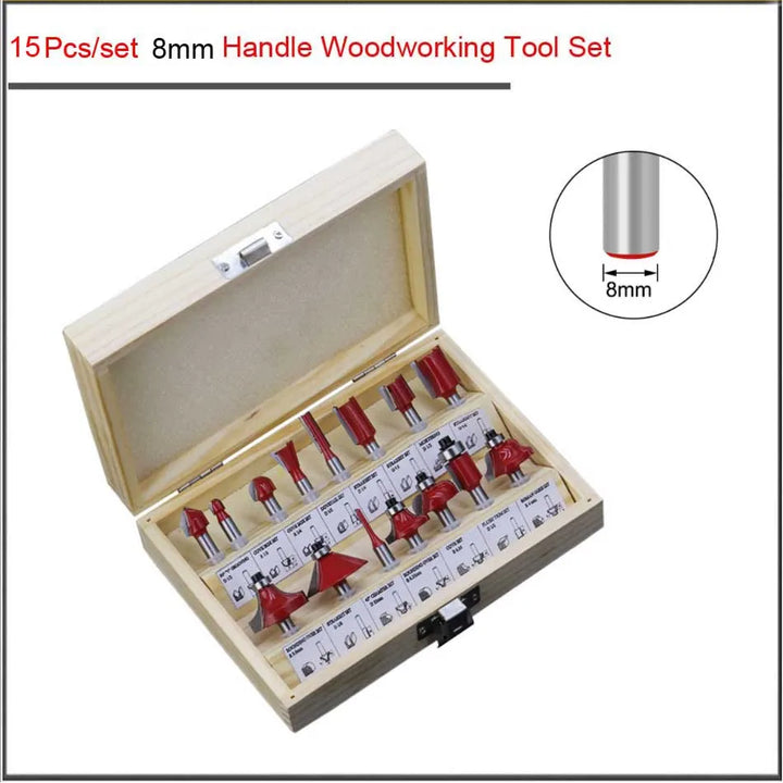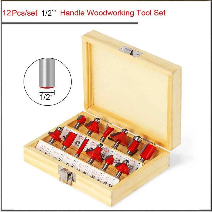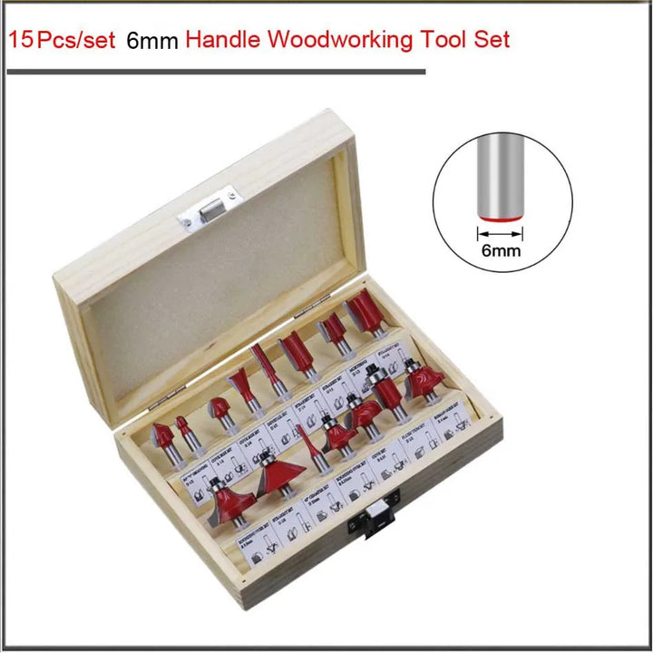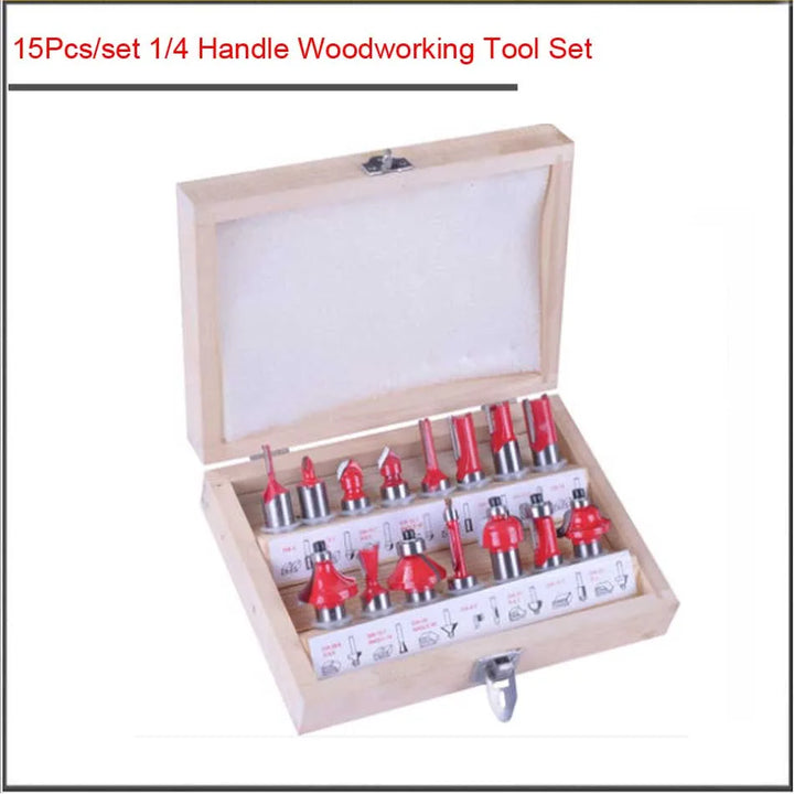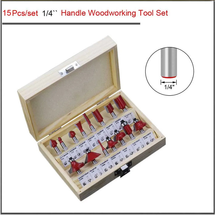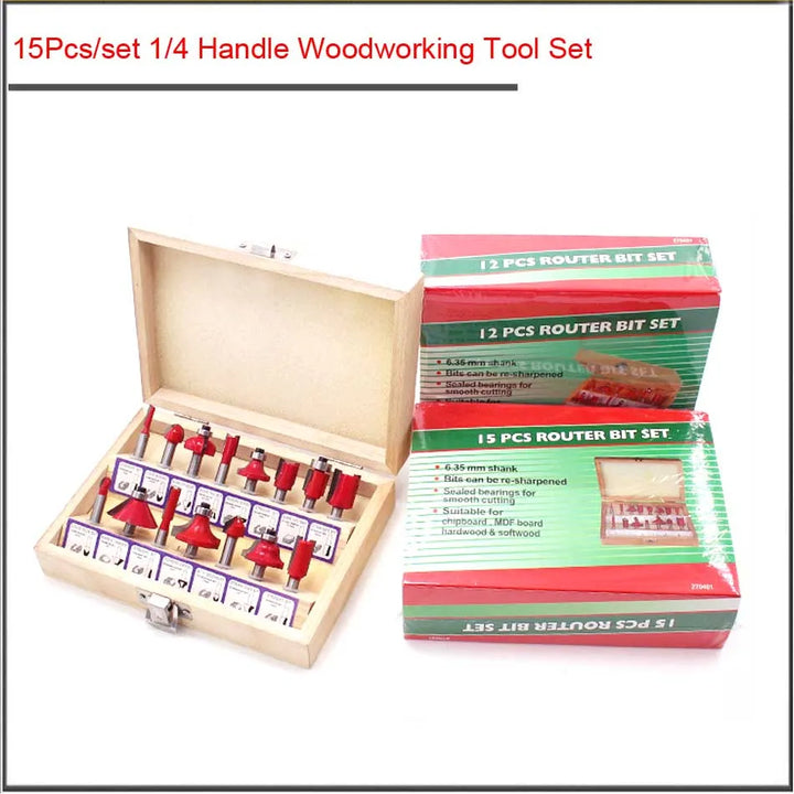 12 15Pcs set HSS Wooden box Woodworking Milling Cutters 1/2 1/4'' 6 8mm Shank Carbide Router Bit For Engraving Cutting Tool