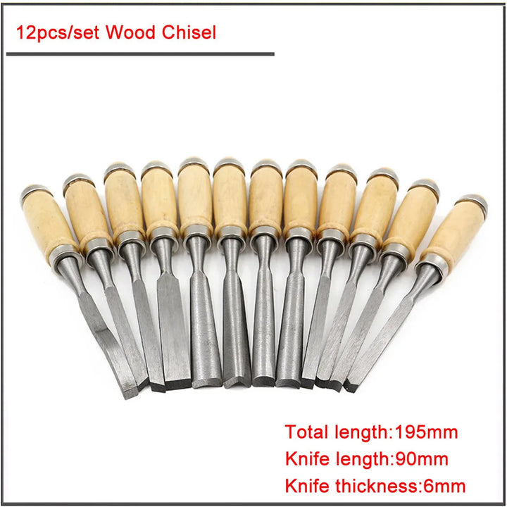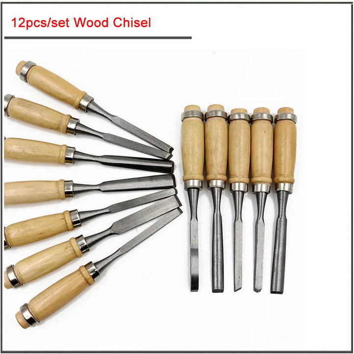 12pcs DIY Wood chisel, woodworking tools wood carving knife, carving chisel, hand carving knife Woodworking piercing tool knife