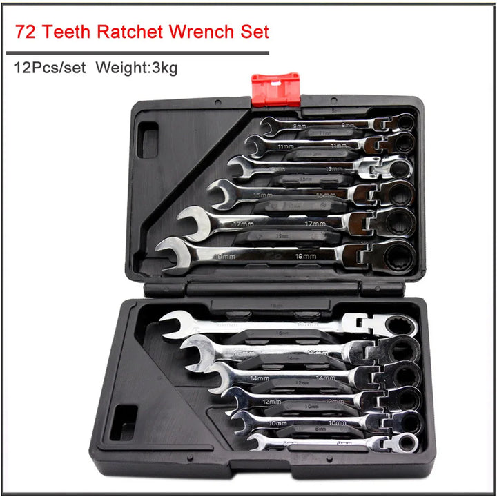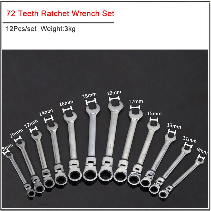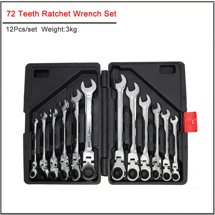 12pcs High quality 72 teeth Adjustable head ratchet wrench set,Dual purpose ratchet wrench automobile repair tool set