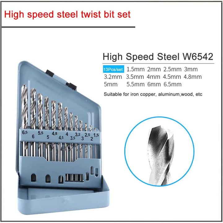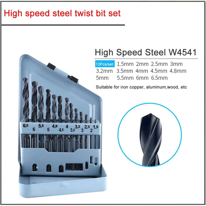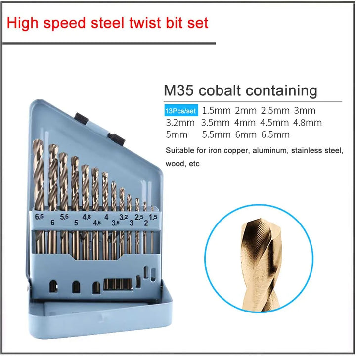 13Pcs/set 1.5-6.5mm W4541 W6542 M35 Cobalt High speed steel titanium plated twist drill set,HSS Straight shank twist drill