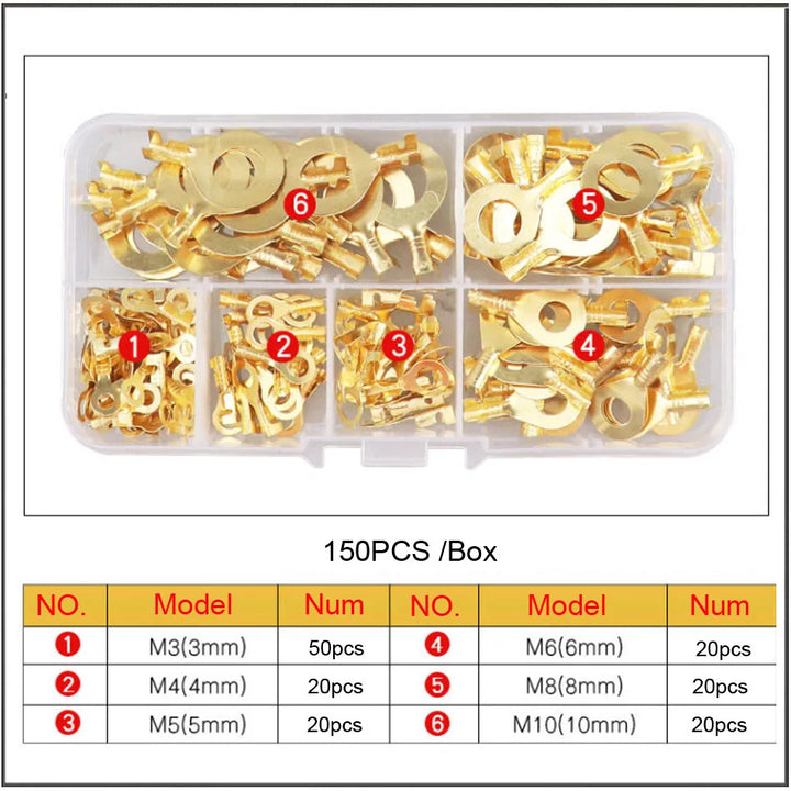 150pcs Box mounted pure copper cable ring type lug combination M3.2-M10.2 wire connection terminal