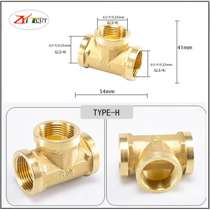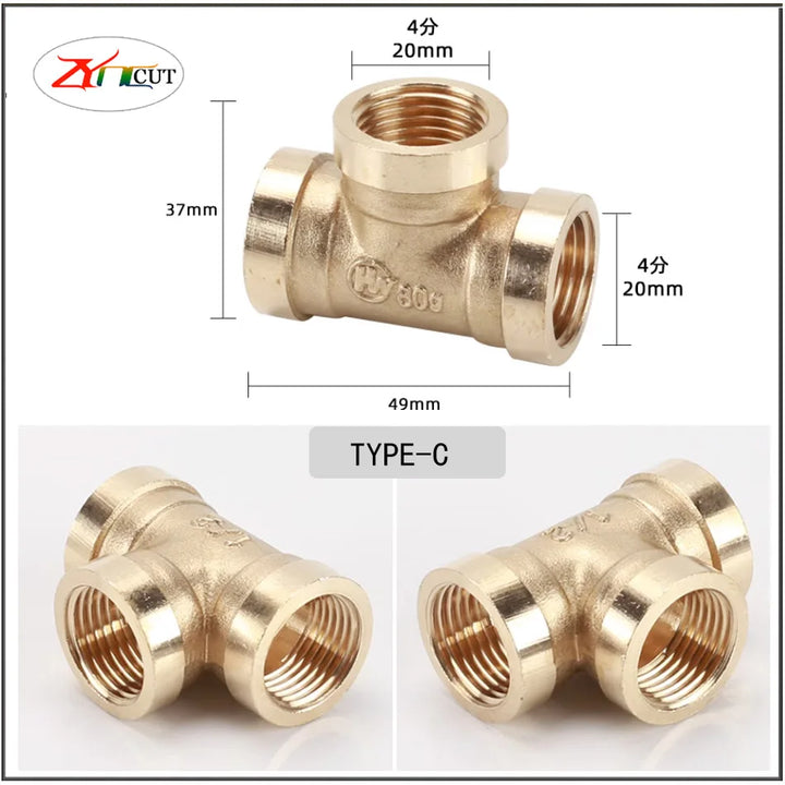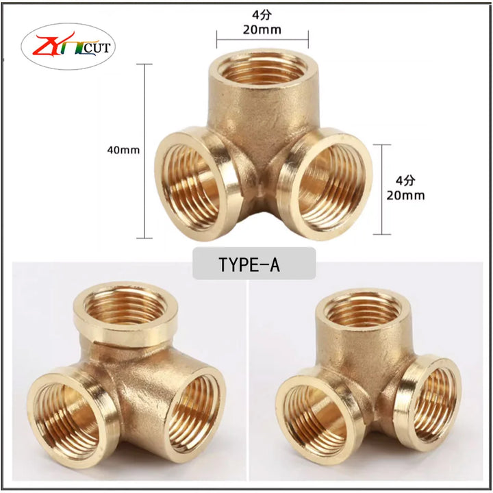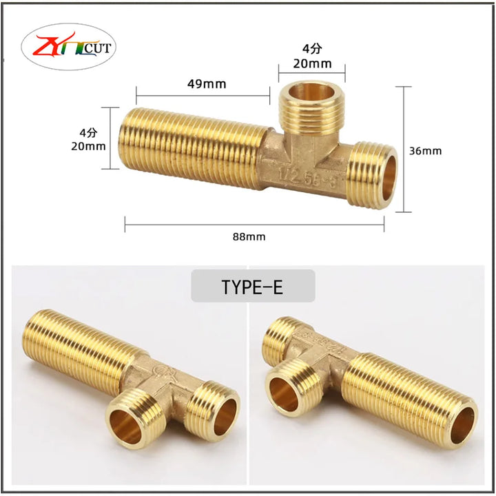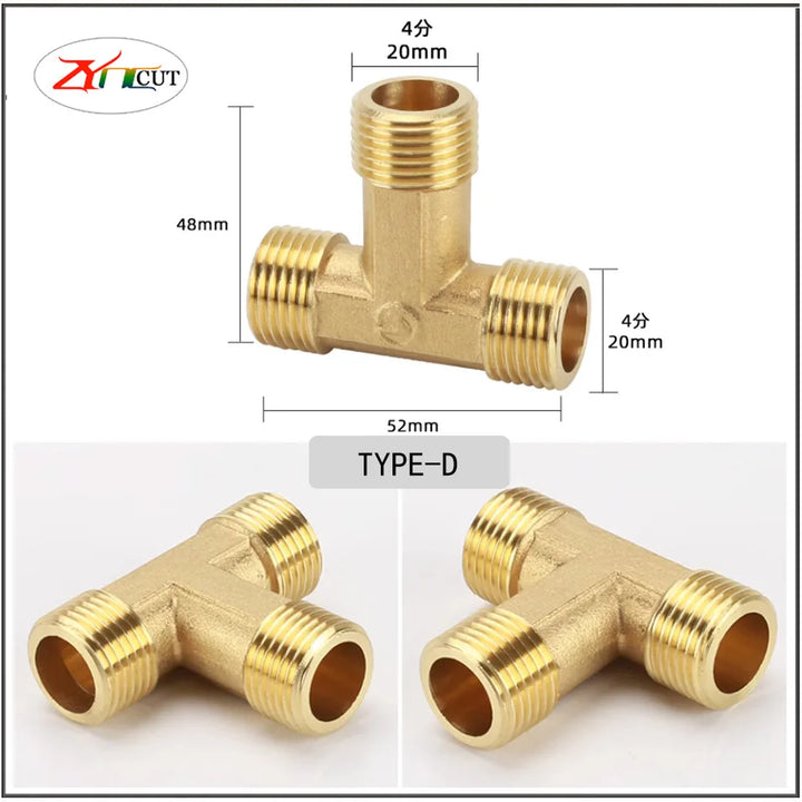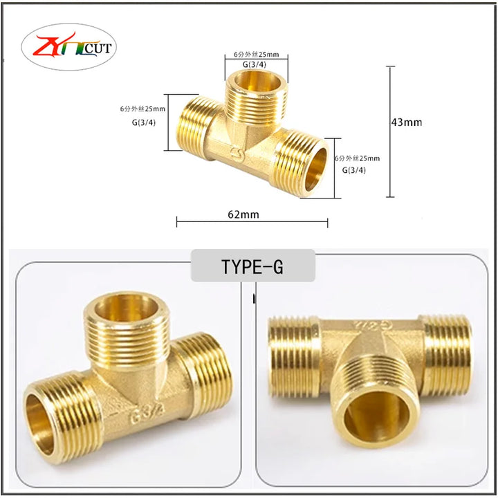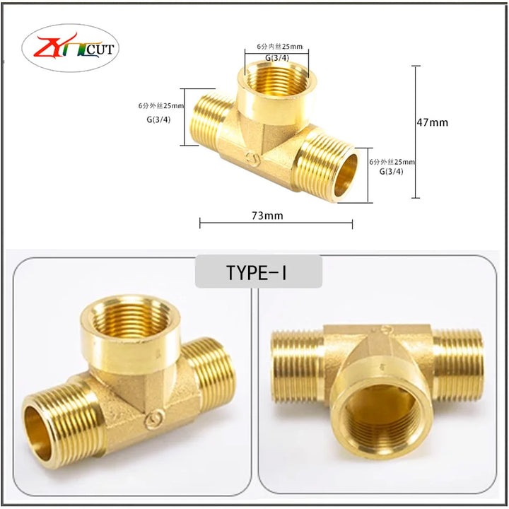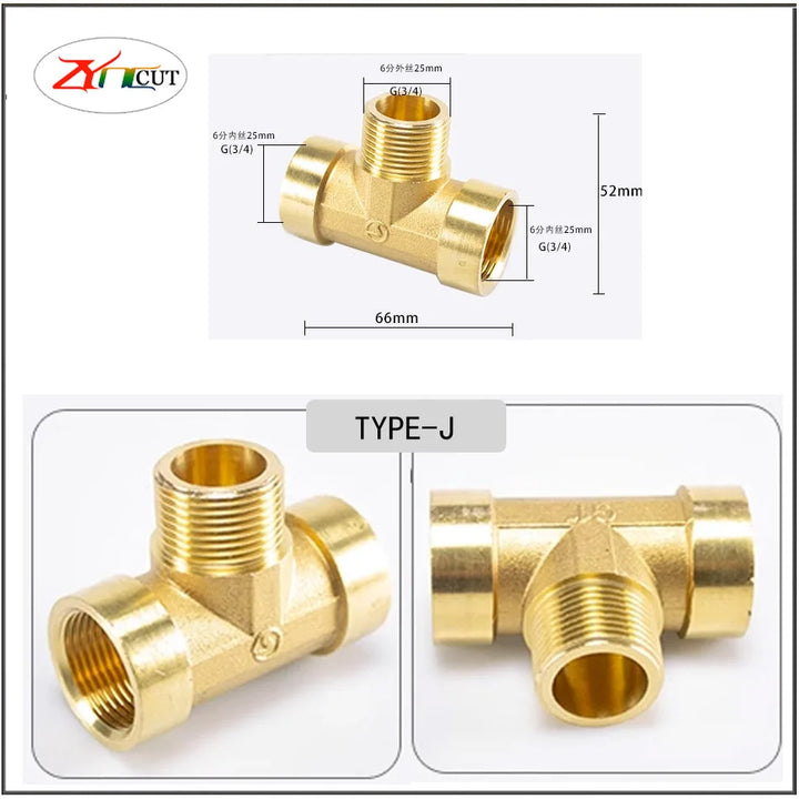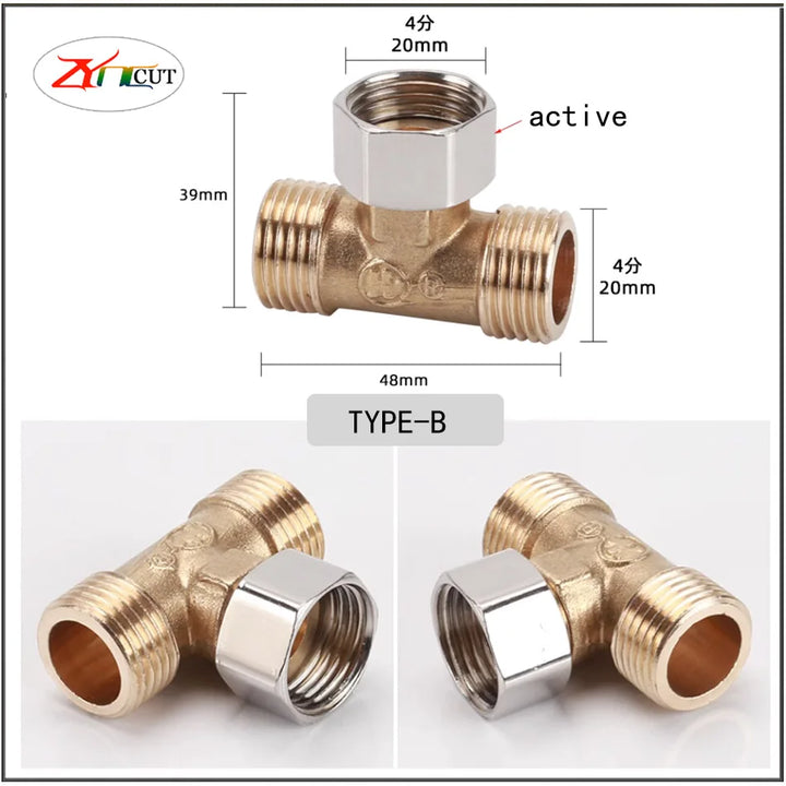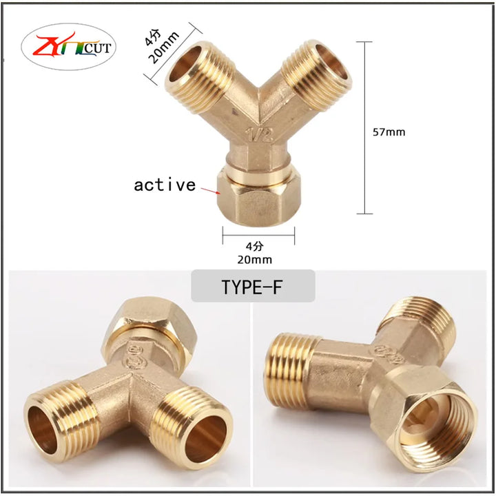 20mm 25mm Pipe Joint Inner Outer Wire Three-way All Copper Household Thickened T-Y Type Flexible Joint Movable Brass joint