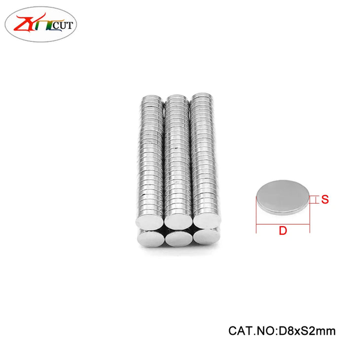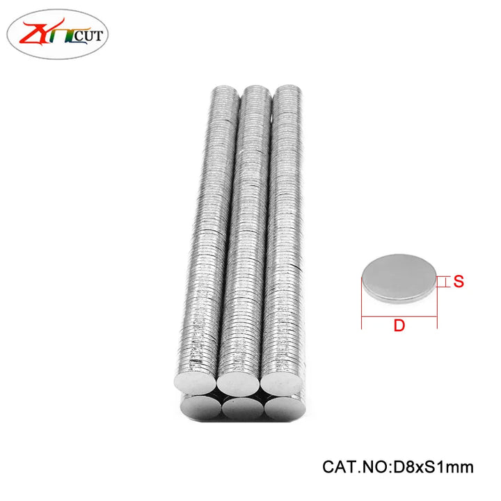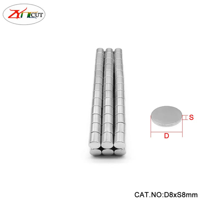 20Pcs/lots Dia 8mm thick 1 2 3 4 5 6 8mm high magnetic circular magnet rare earth permanent sheet electroplating small magnet