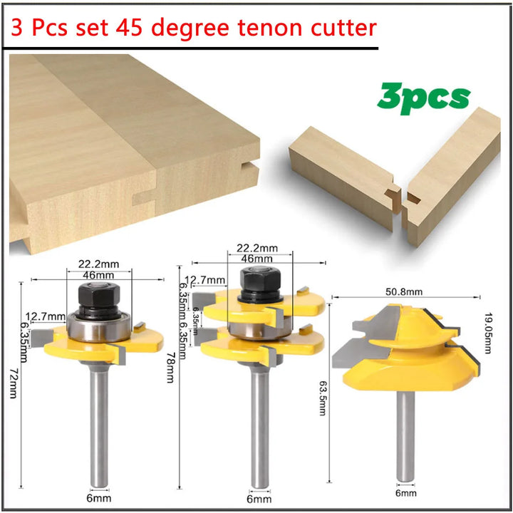 3Pcs set 6mm shank Tenon Type Combine Knife 45 Degree Tenon Joint Cutter Wood floor Trapezoid Board Splicing Knife
