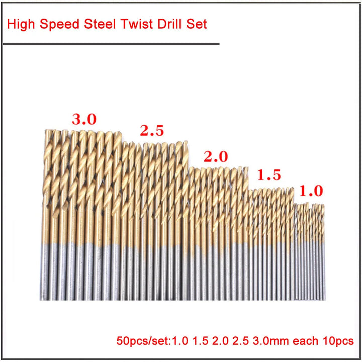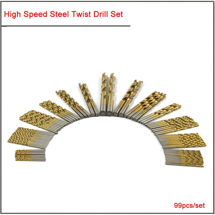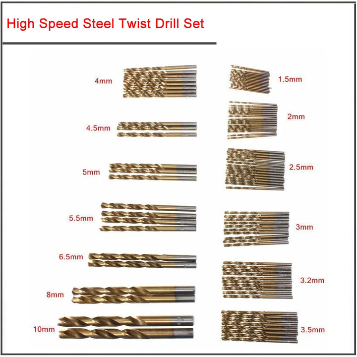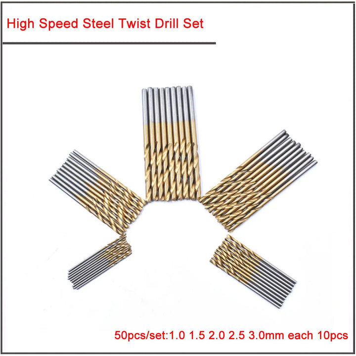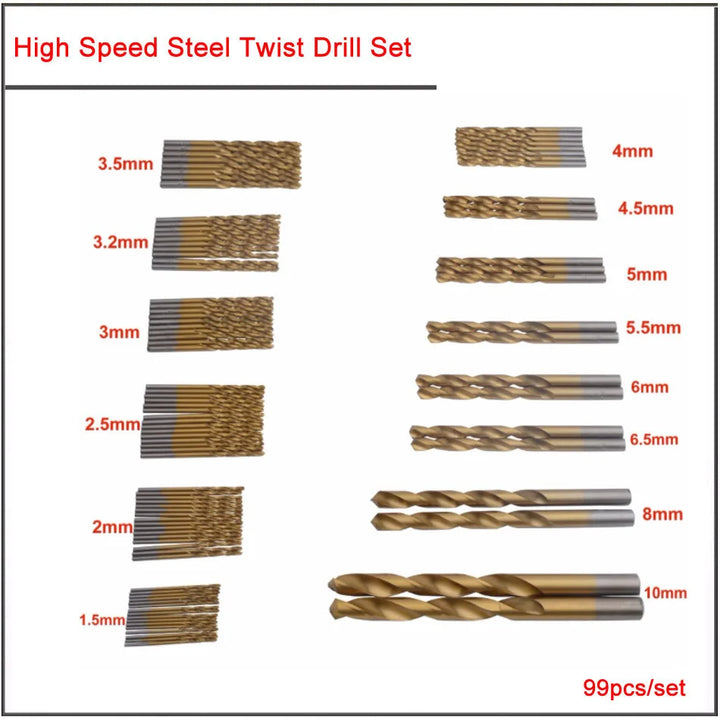 50pcs/set 1.0-3.0mm 99Pcs/set 1.5-10mm High speed steel titanium plated twist drill set,HSS Straight shank twist drill bit