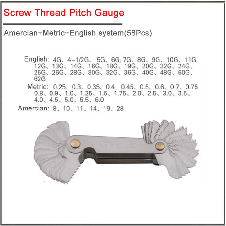 55 60 Degree Metric Screw Thread Pitch Gauge Blade Gage Pitch Folding for Measuring Gauging Tool Stainless Steel Screw Gauge