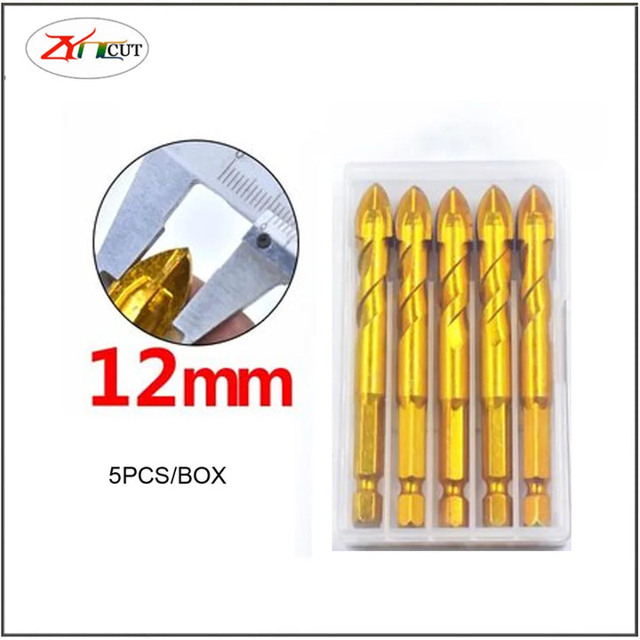 5Pcs 6 8 10 12mm Cross Hex Tile Drill Bits Set for Glass Ceramic Concrete Hole Opener Brick Hard Alloy Triangle Bit Tool Kit