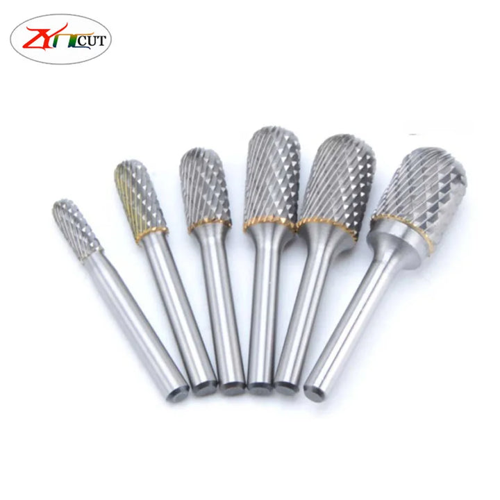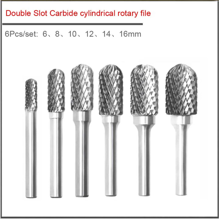 6pcs set 6 8 10 12 14 16mm TYPE-C double slot Metal tungsten steel grinding head milling cutter, Carbide cylindrical rotary file