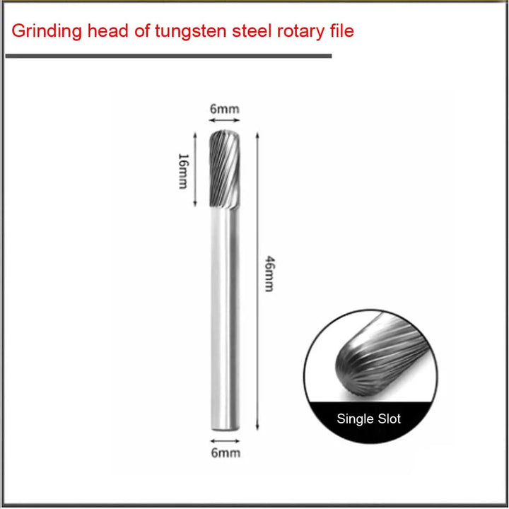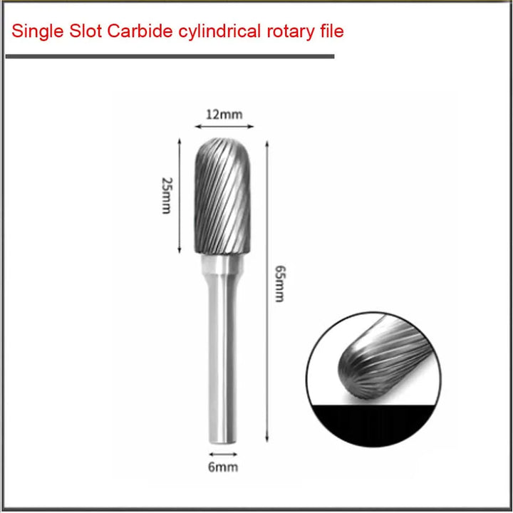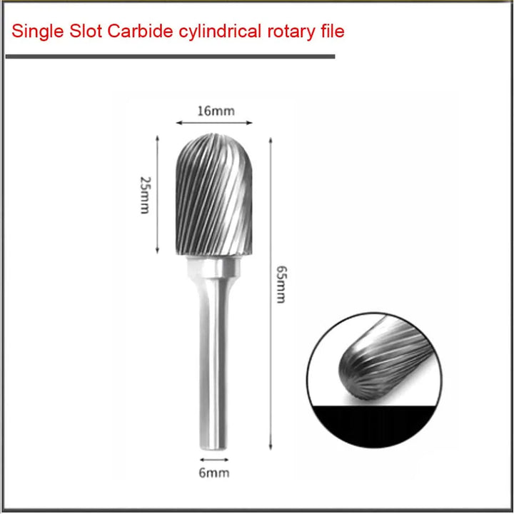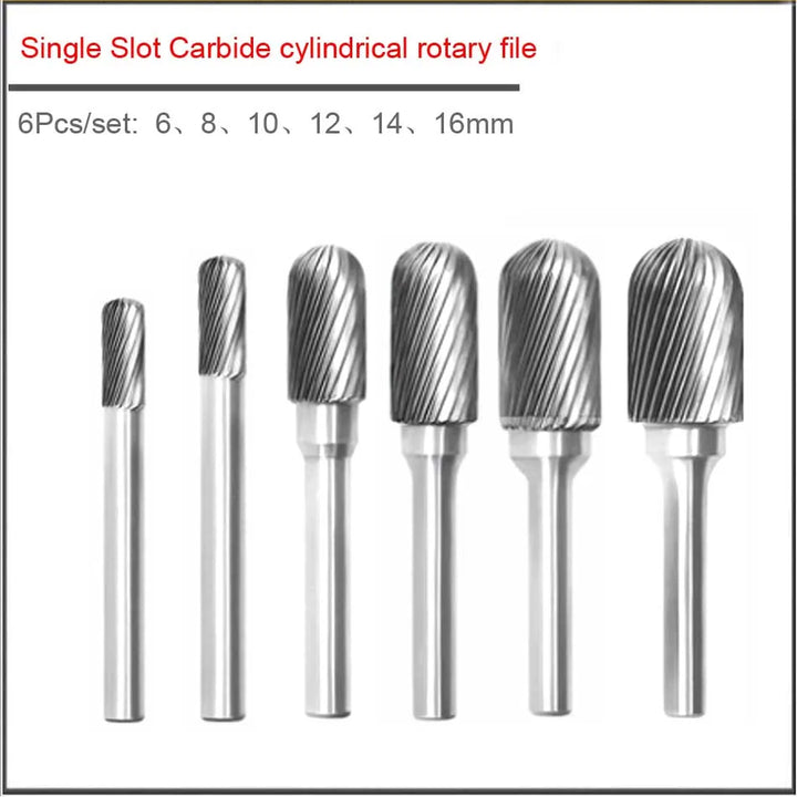 6pcs set 6 8 10 12 14 16mm Type-C single slot Carbide cylindrical rotary file,Metal tungsten steel grinding head milling cutter