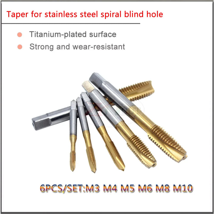 6PCS/SET M3/M4/M5/M6/M8/M10 Taper for stainless steel spiral blind hole machine tap Chinese Standard Metric Spiral Tapping