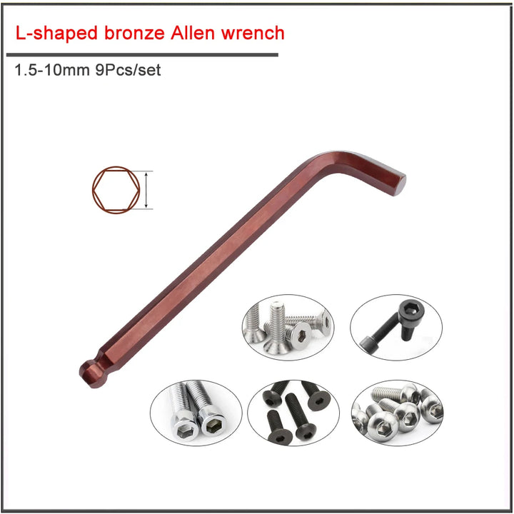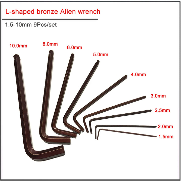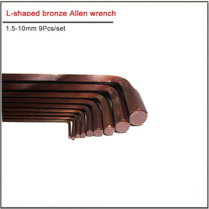 9pcs/set 1.5 2 2.5 3 4 5 6 8 10 mm High hardness bronze L-type hexagonal wrench ,High hardness bronze L-type hexagonal wrench