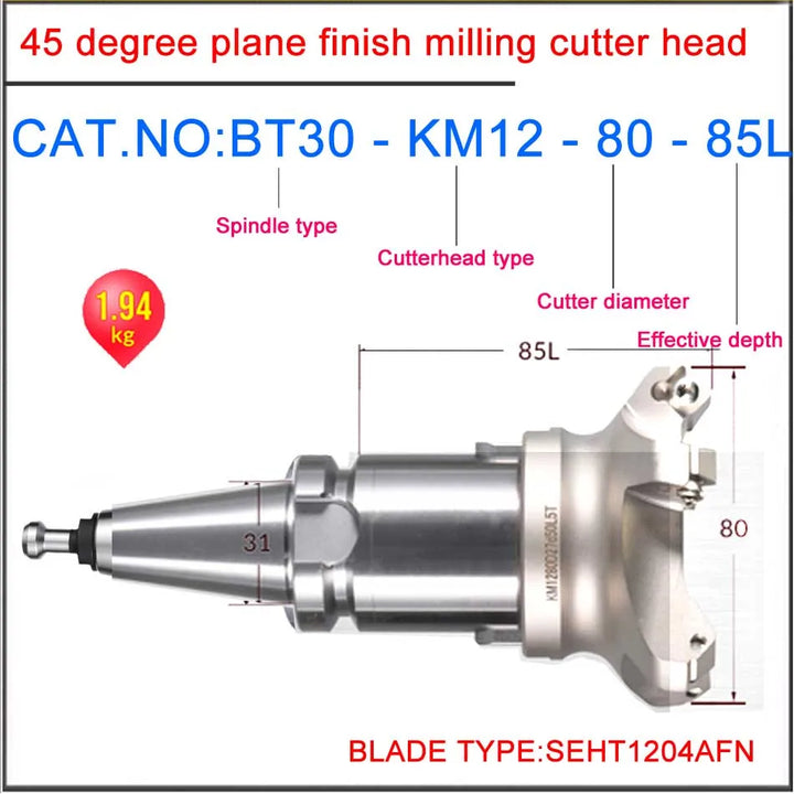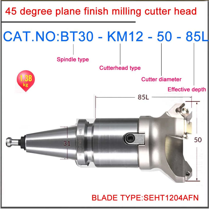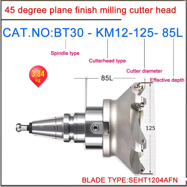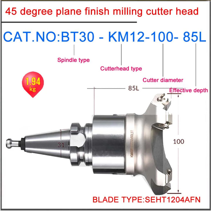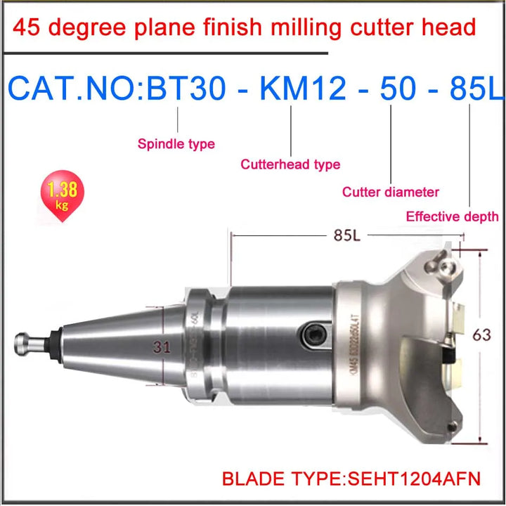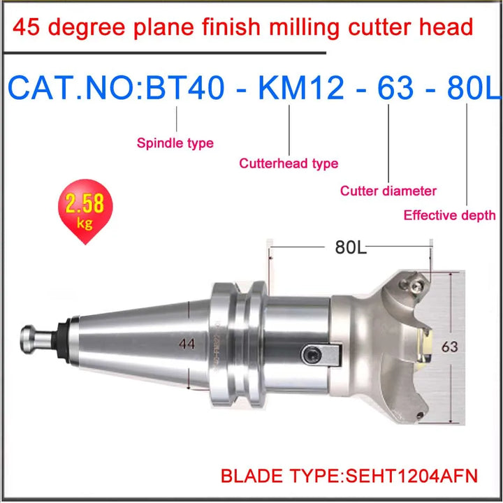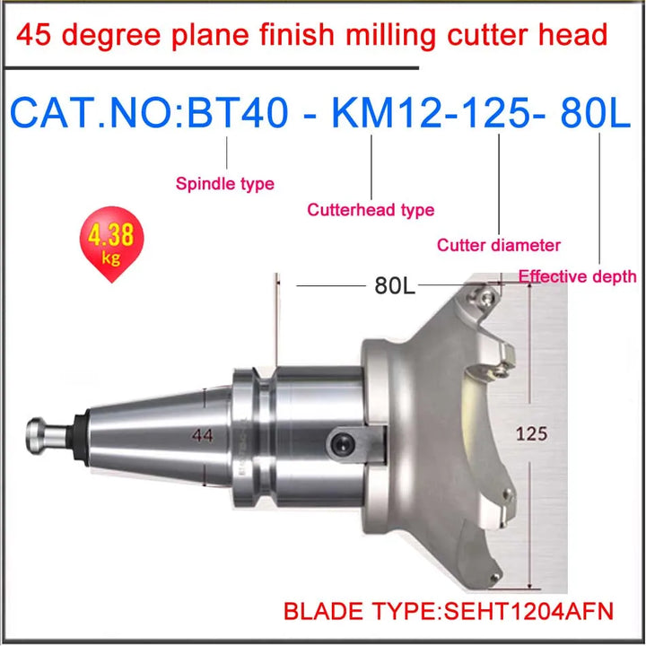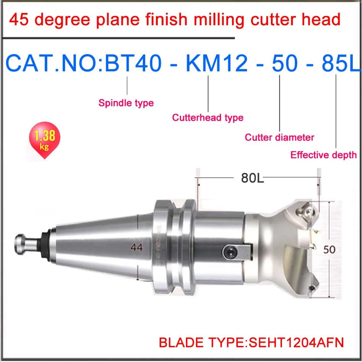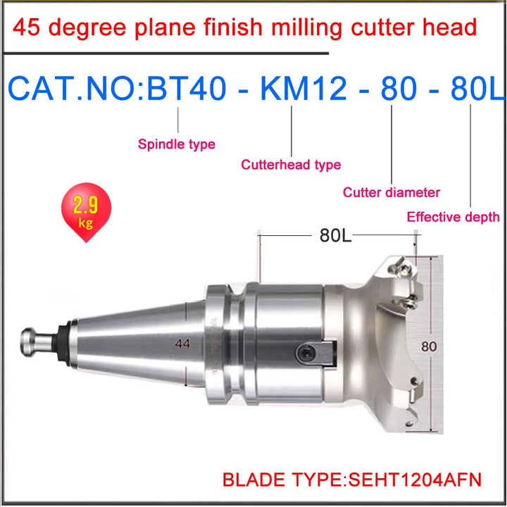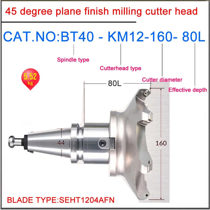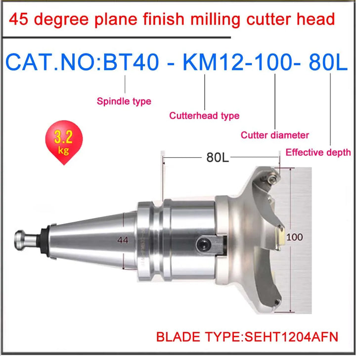 BT30 BT40-km12 50 63 80 100 125 160mm 45degree Flat milling and finishing cutter head seht1204 milling cutters for machine tools