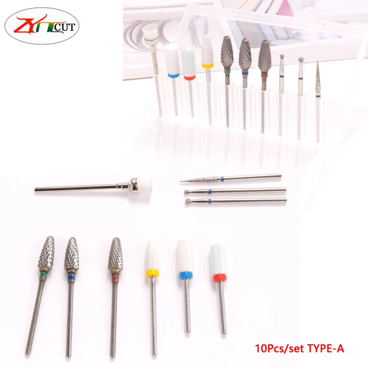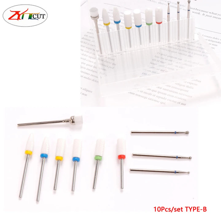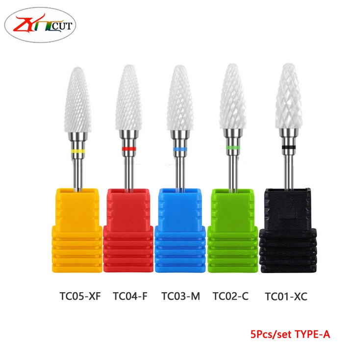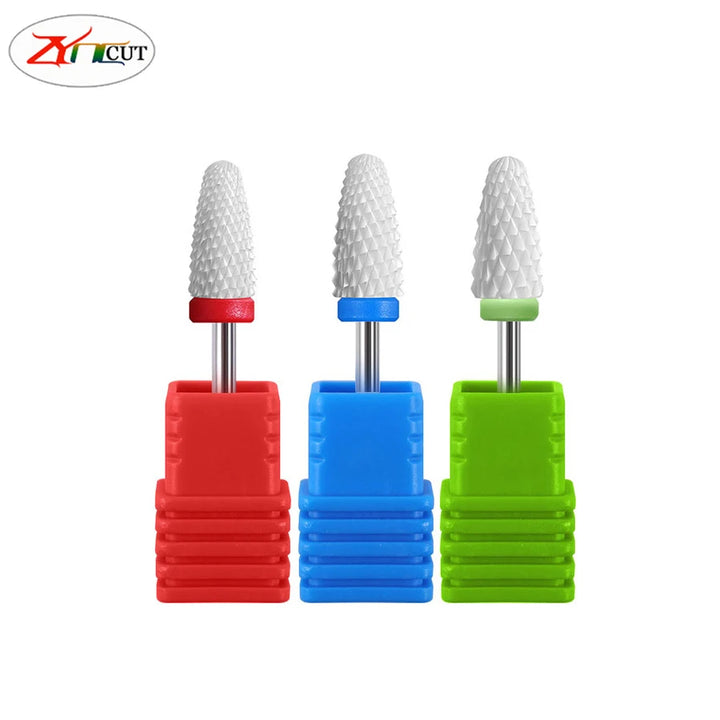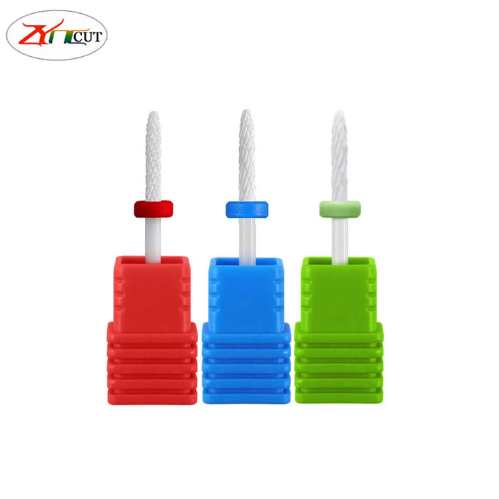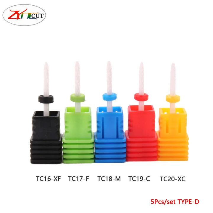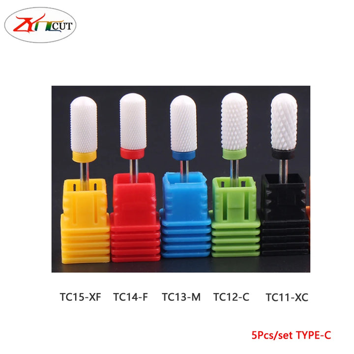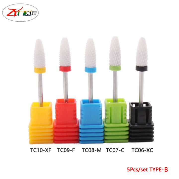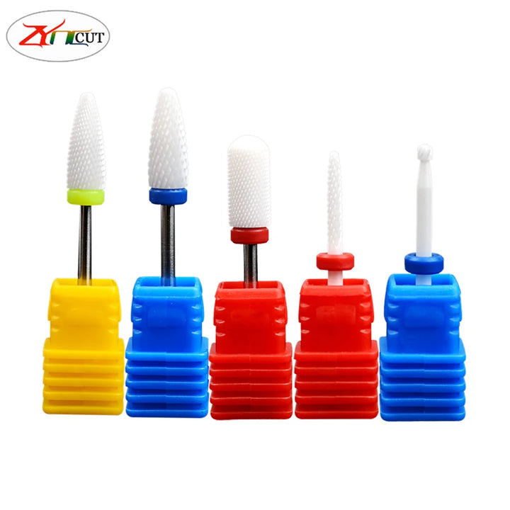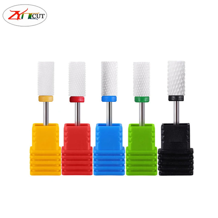 Ceramic nail head 5pcs 3/32inch Nail polishing machine ceramic grinding head set, cylindrical flat head ceramic grinding head