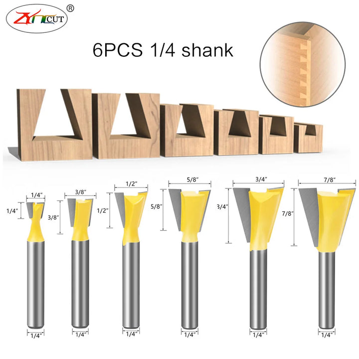 Dovetail Joint Router Bits 14 Degree Woodworking Engraving Milling Cutters For Wood Tungsten Cutter 6mm 6.35mm 8mm 12.7mm Shank