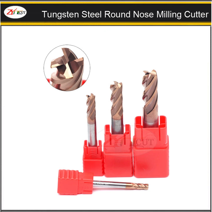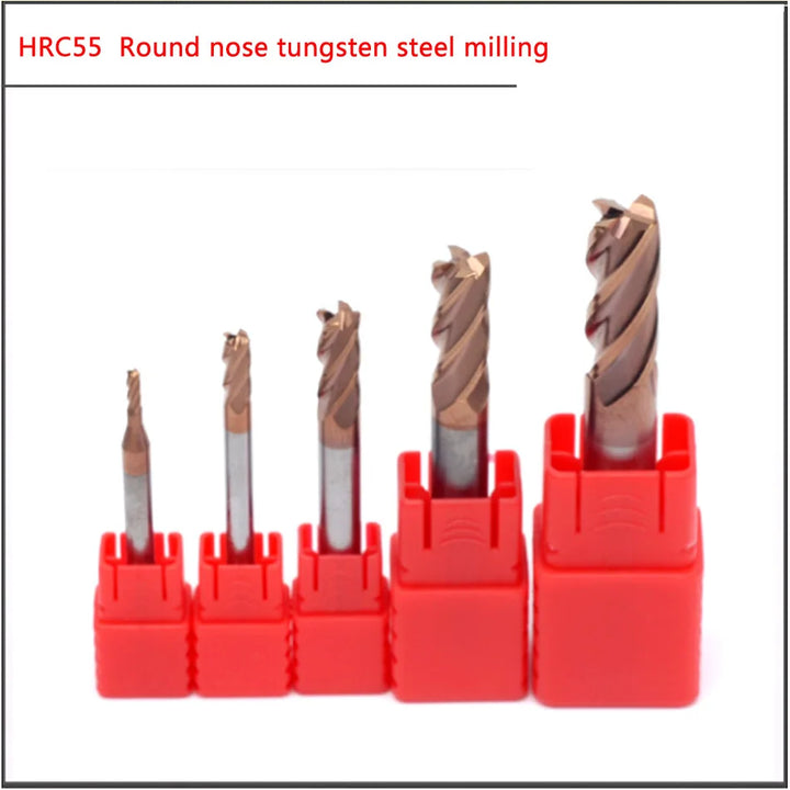 HRC55 R Milling cutter 1/2/3/4/6/8/10/12/16 R0.2/R0.3/R0.5/R1 Four-edge high hardness tungsten steel round nose milling cutter