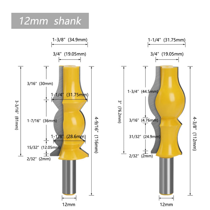 2pcs 12mm 1/2" Large Reversible Crown Molding Router Bit Set Armrest Line Groove Milling Cutters for Wood Working MC03050