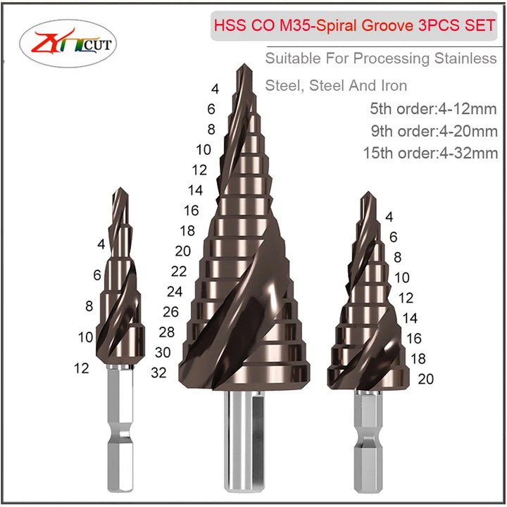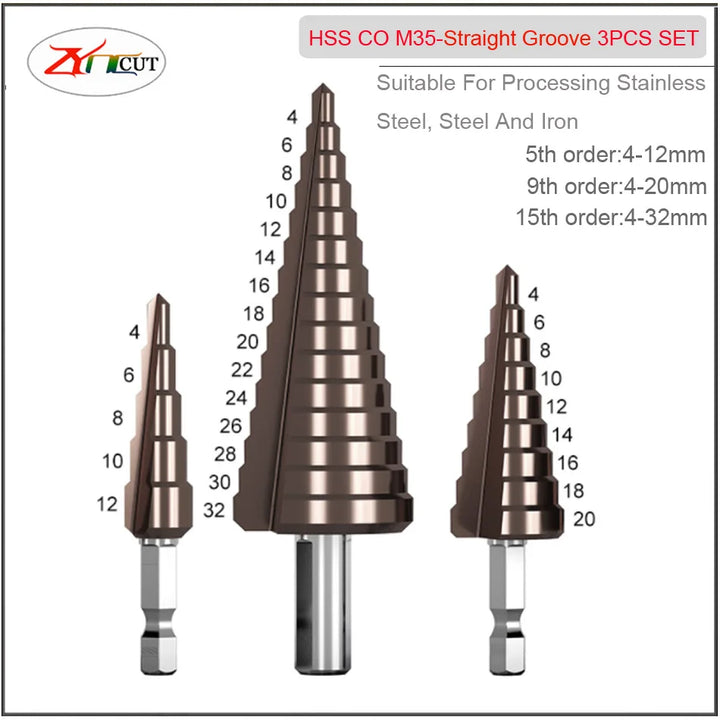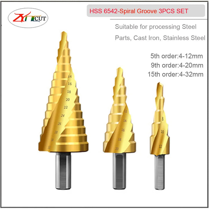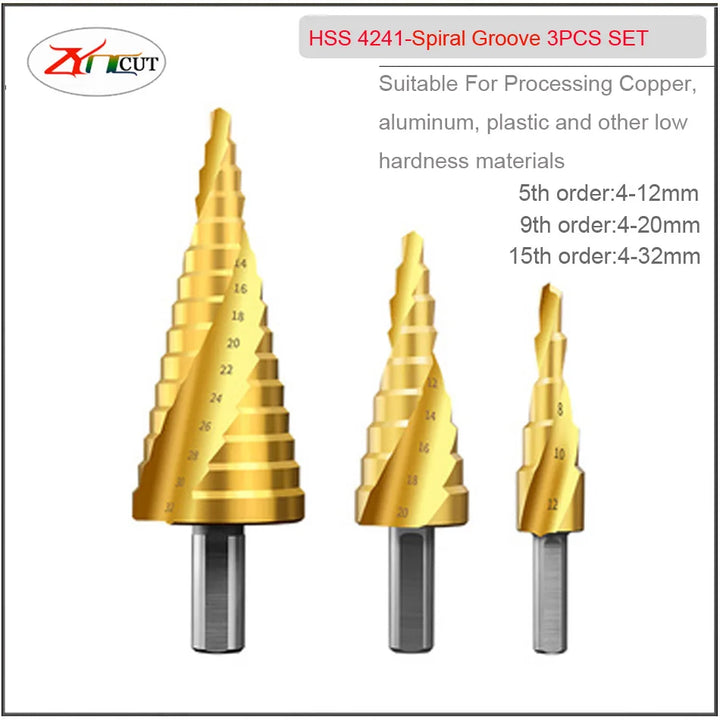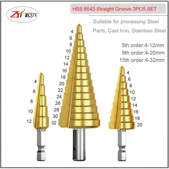 Pagoda Drill 4-12 4-20 4-32mm Step Drill Multifunctional spiral straight groove titanium and cobalt plated stepped bit