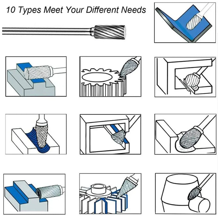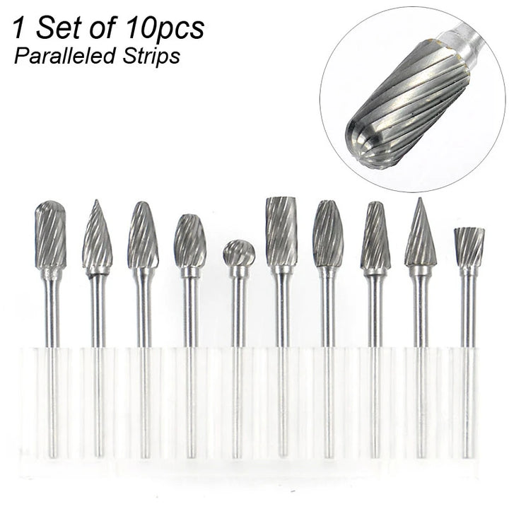 Rotary Carbide Burr Set 1/8" Shank, 1/4" Head Length Tungsten Steel for Woodworking Drilling Metal Carving Engraving Polishing