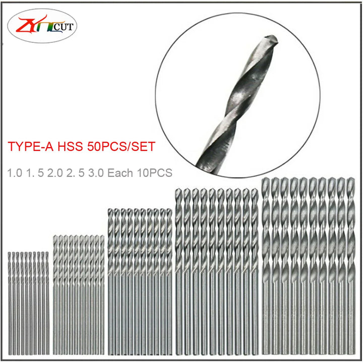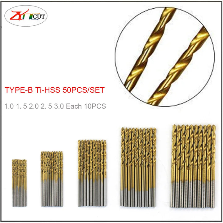 Twist Drill 50Pcs 1 1.5 2 2.5 3MM HSS Titanium Coated Drill Bit High Speed Steel Drill Bit Straight Shank Drill